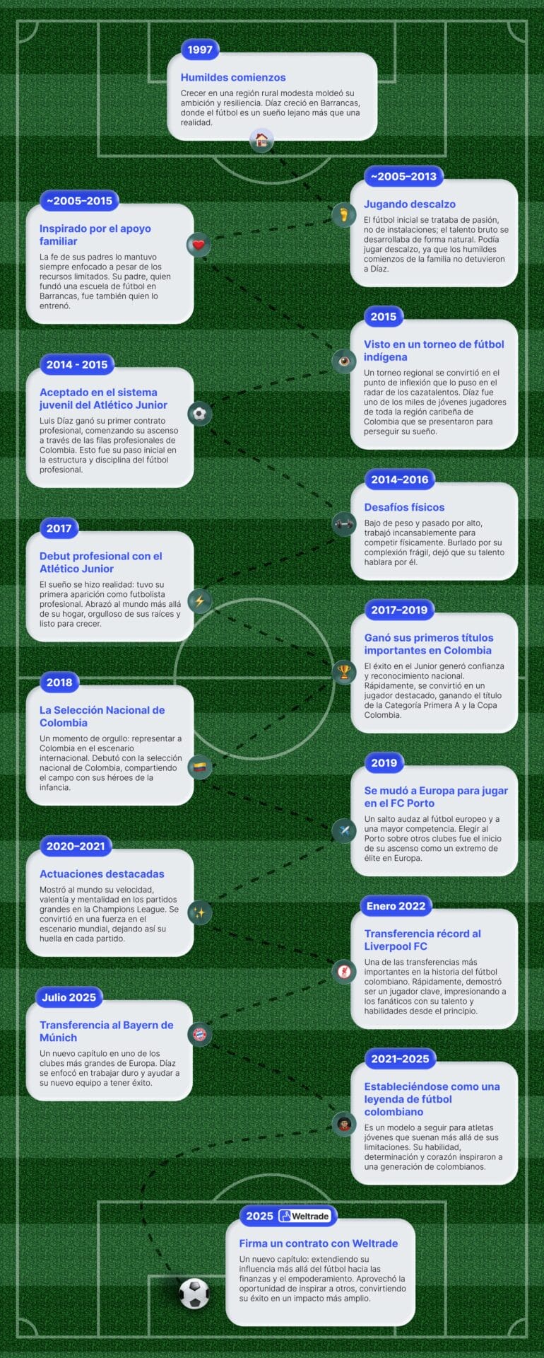 Su historia también se conecta con la vida más allá del fútbol. Se trata de identificar oportunidades, trabajarlas y tomar decisiones sabias a lo largo del camino. Su asociación con Weltrade destaca una creencia compartida en el empoderamiento y el potencial de crecimiento, alentando a todos a esforzarse por su propia versión del éxito.