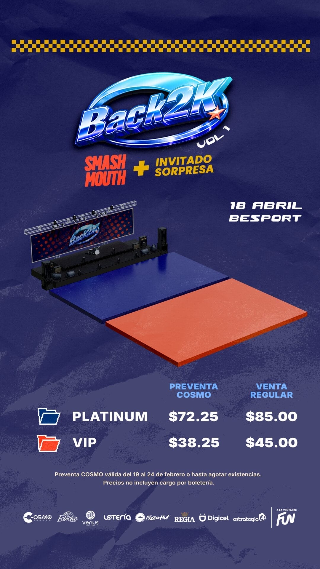 La preventa de boletos ya está disponible en Fun Capital y estos son los precios válidos hasta el 24 de febrero: Platinum: $72.25 y Preferencial $38.25