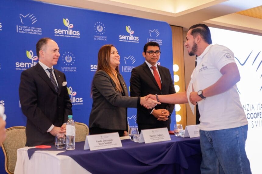 El Ministerio de Relaciones Exteriores, a través de la Dirección de Protección a la Persona en Movilidad, realizó la graduación de 117 jóvenes becarios provenientes de Ahuachapán, Santa Ana, La Libertad, La Paz y La Unión, quienes culminaron su formación en el marco del proyecto “Semillas”, una iniciativa financiada por el Gobierno de Italia a través de la Agencia Italiana de Cooperación al Desarrollo (AICS) y administrada con el acompañamiento de la Secretaría Técnica del Financiamiento Externo (SETEFE).