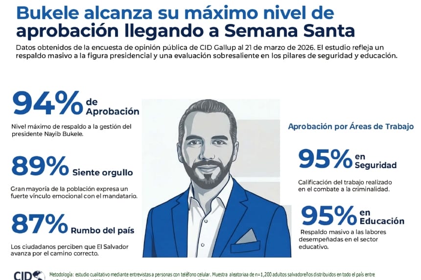 Presidente Bukele alcanza 94 % de aprobación según encuesta de CID Gallup
