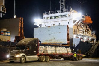 Puerto de La Unión recibe buque con 21 mil toneladas de cemento y consolida la reactivación logística