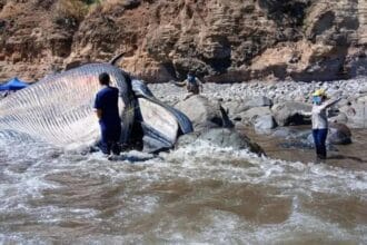 Ballena de Bryde de 20 metros queda varada en la costa salvadoreña