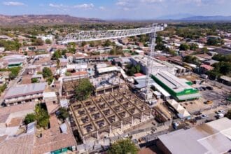 Para agilizar las obras utilizan una grúa torre de 35 metros de…