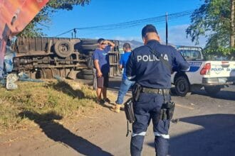 El camión, que transportaba cajas de manteca y harina, perdió el control…