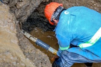 ANDA repara fuga de agua en calle al volcán y Avenida Masferrer Norte