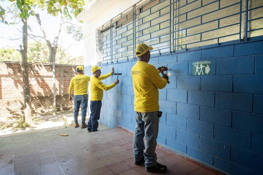 Privados de libertad en fase de confianza trabajan en la restauración de todas las aulas. En los espacios exteriores, se ejecutarán obras que comprenden la construcción de andenes, áreas lúdicas y zonas ajardinadas, fortaleciendo los entornos de convivencia y recreación escolar.