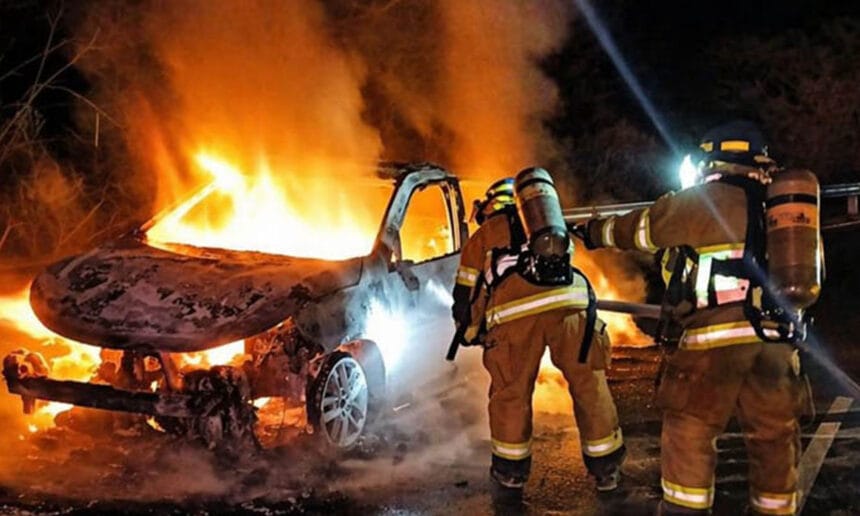 Elementos del Cuerpo de Bomberos de El Salvador (CBES) atendieron la emergencia y lograron controlar el siniestro. “Sofocamos incendio vehicular. Realizamos labores de liquidación y enfriamiento del vehículo, eliminando puntos calientes para evitar reignición”, detalló la institución.